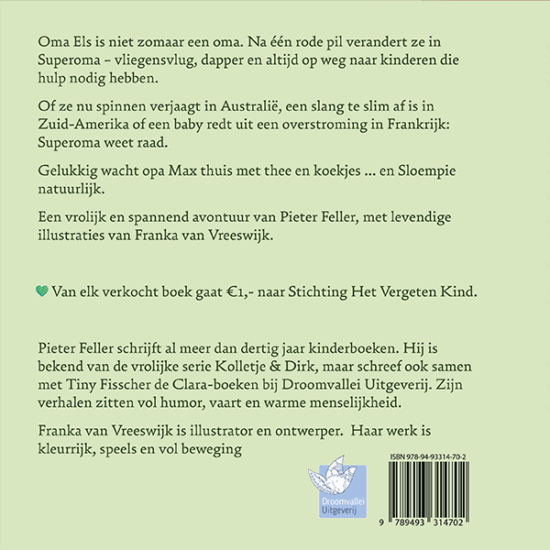 Oma Els is niet zomaar een oma. Na één rode pil verandert ze in Superoma – vliegensvlug, dapper en altijd op weg naar kinderen die hulp nodig hebben.